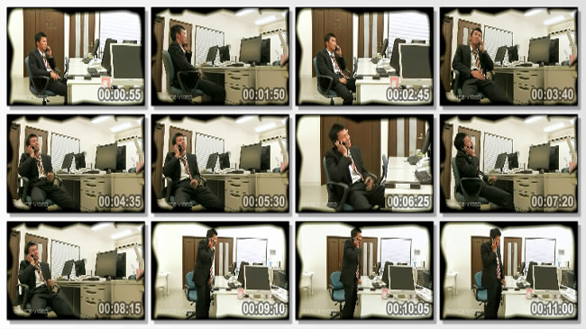 休日出勤時にいつもオナニーしているという後輩社員に秘密でカメラをセット!おもむろにスマホを手に取り女に電話をかけた次の瞬間!股間を触りながらスラックスをモッコリさせ…遂にその瞬間が!